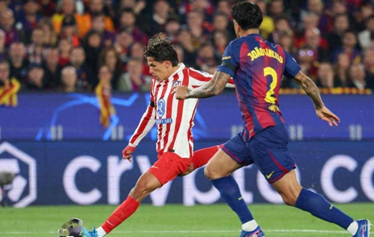 当19岁的巴萨后卫库巴西在第44分钟因战术犯规被VAR改判红牌罚下时,比赛的平衡被瞬间打破。 仅仅一分钟后,马竞的“小蜘蛛”阿尔瓦雷斯就用一记完美的弧线球直挂死角,为客队取得领先。 这个进球不仅让诺坎普陷入死寂,更让马竞带着两球的巨大优势回到主场,晋级四强的道路看起来一片光明。
